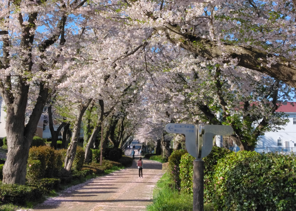 ランドセルを背負った子どもたちや、この道を行きかう人々の表情も、いつも以上に明るく柔らいで見えます。