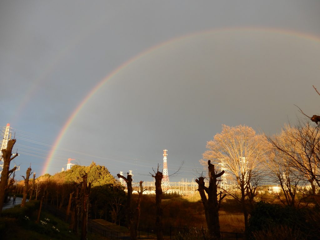 ある日の夕方、にわか雨の後にふと見上げると、空いっぱいに見事な虹が出現していました。