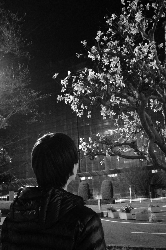 西白井の駅前では、春になると1本の木が白い花を咲かせます。
