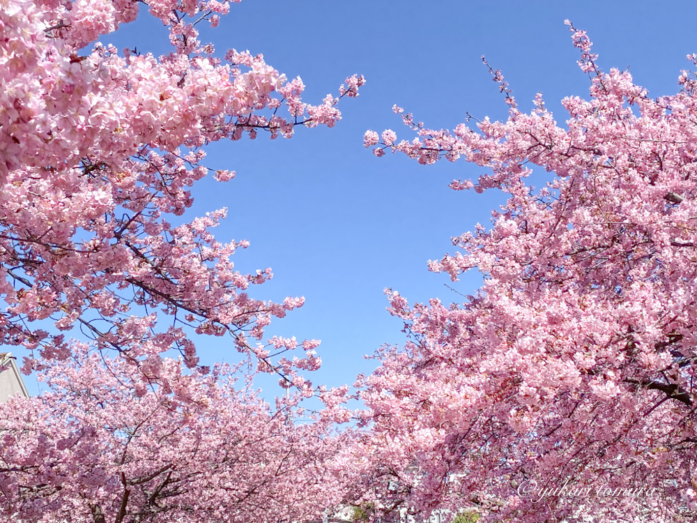住宅街の中にある何気ない公園が、春になると姿を変えて地元の方でも知らない人も多い、白河津桜が咲き誇るスポットに大変身!